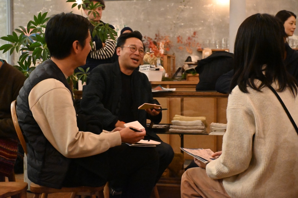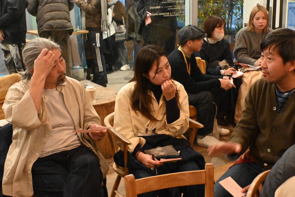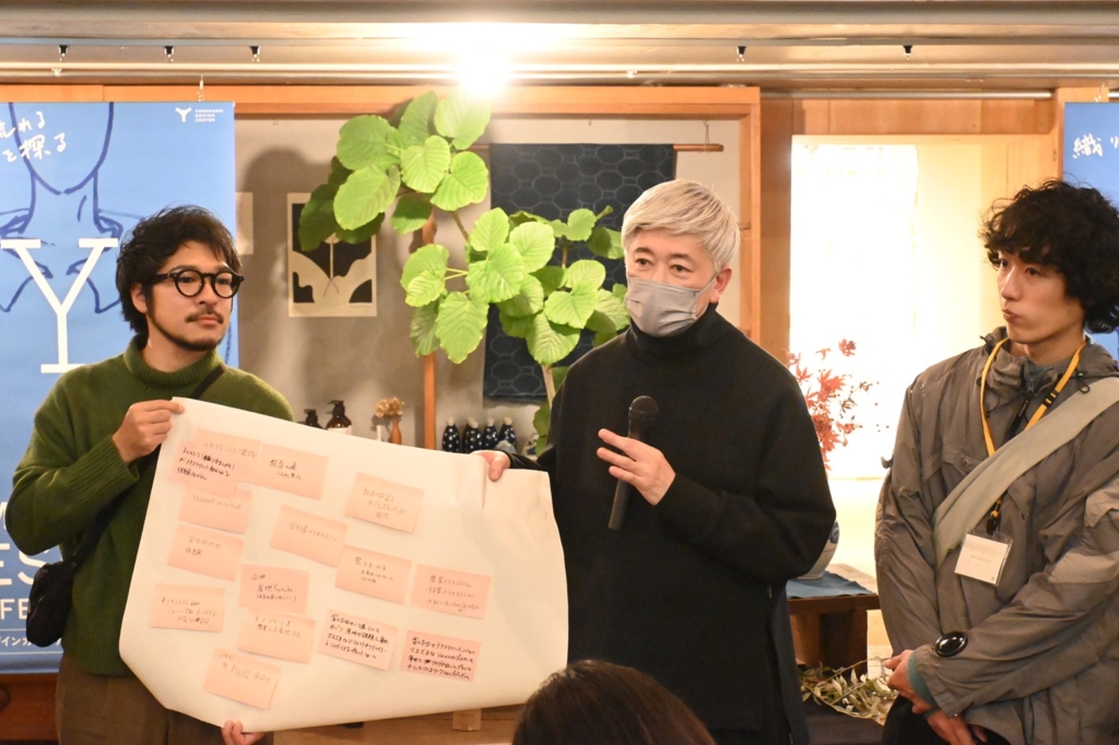 「アーティストインレジデンスで1ヶ月ほど富士吉田に滞在し、共同プロジェクトで制作した作品を発表していますが、もっと長く滞在したいし、機屋についても知りたい。そしてできればフランスへも来てほしいです」と話したのはベルトノーさん。会場からは、「海外アーティストがもっとアクセスしやすい街にしたい」、「いまはトライアルだけど、これからは国際的なテキスタイルウィークにできるはず」といった意見も聞かれ、林千晶ディレクターは「みなさんが主体的に考えたことが素晴らしいと思います。今日のパネルディスカッションとワークショップをきっかけに、実現しましょう。ここから実際の“形”に変えてきましょう」とまとめました。