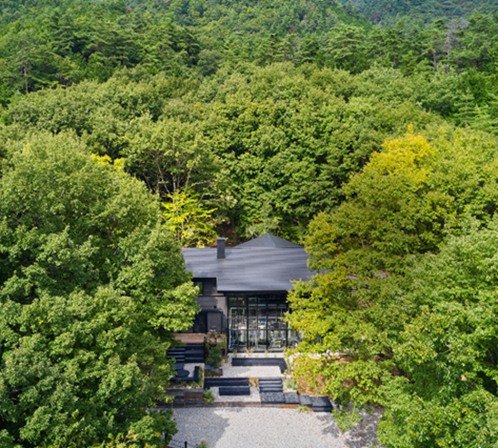 具体的に⾵⼟を⽣かした持続可能な地域づくりとは、⼭梨の⾃然環境と⼈間の⽇々の暮らしの営みから⽣まれた地場産業(林業、農業、ワイン、⽇本酒、宝⽯、甲州印伝、印鑑、和紙、織物など)を、建築、家具、プロダクト、デザインという形で活⽤し、様々なものをデザインしています。