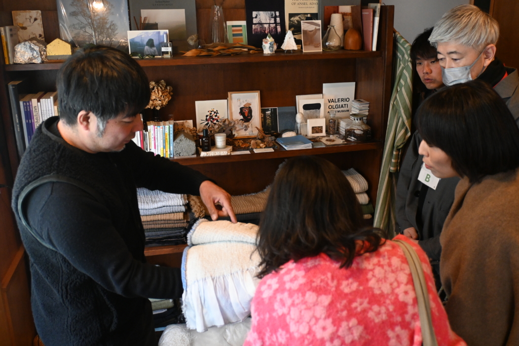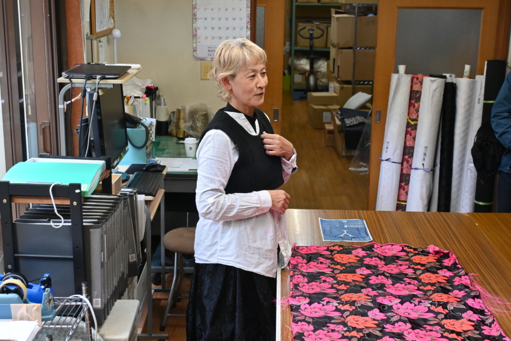 「機屋(はたや)巡りツアー」では、WATANABE TEXTILE、槙田商店、宮下織物の3事業者を見学しました。普段はなかなか見ることのできない織機などを実際に見る貴重な機会となりました。